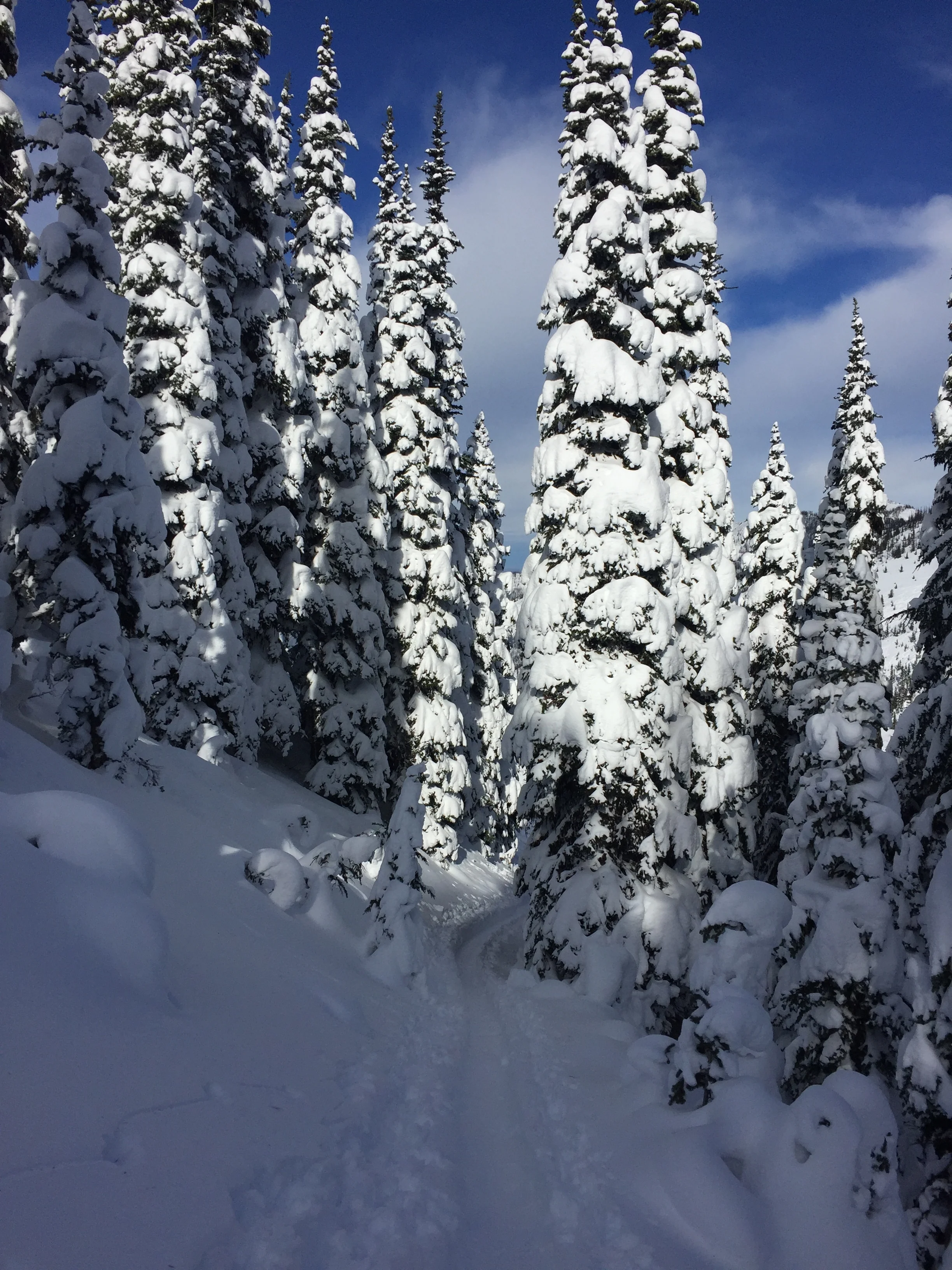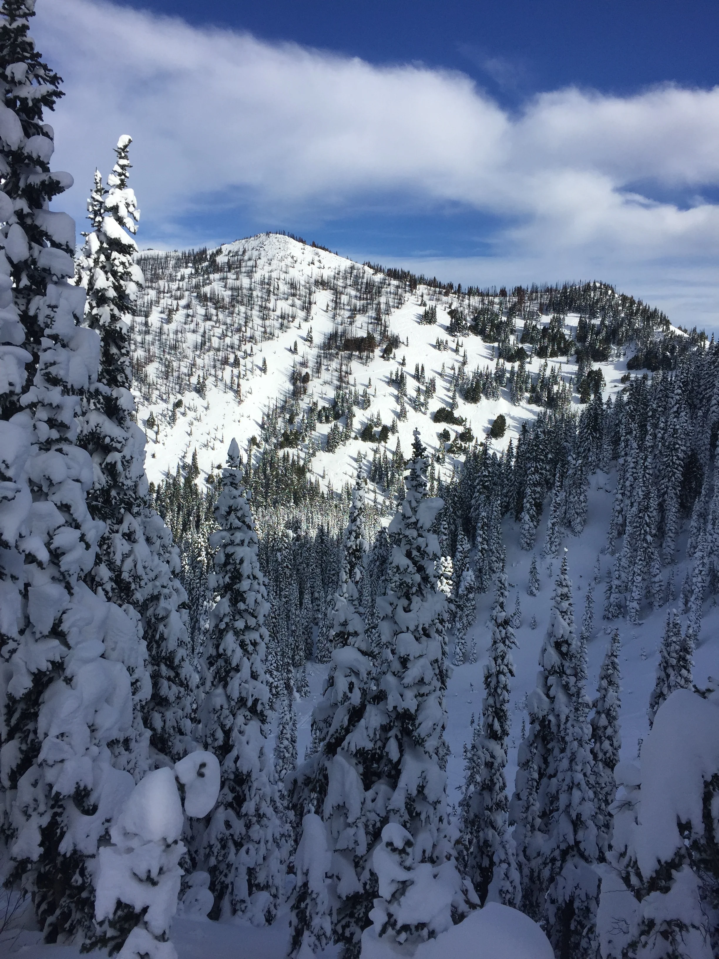 Once we reached Bullion Basin we followed a skin track heading up towards Platinum Peak climbing up the SW face of Platinum to then ski down into Cement Basin. Destroyed by avalanche in March 2014. The Bullion Basin lift would serve lower-elevation terrain opposite the valley of the existing ski area.